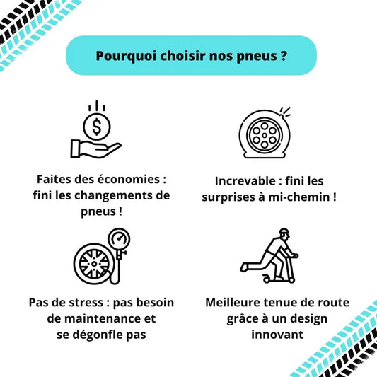 Avantages : Zéro crevaison, durée de vie prolongée.